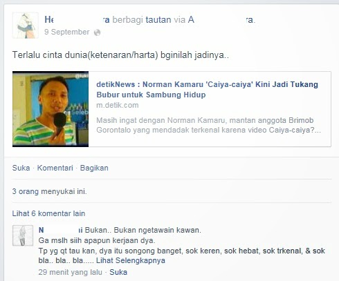 | Komentar positif terhadap perjuangan lagi dari Nol untuk Norman Kamaru. |